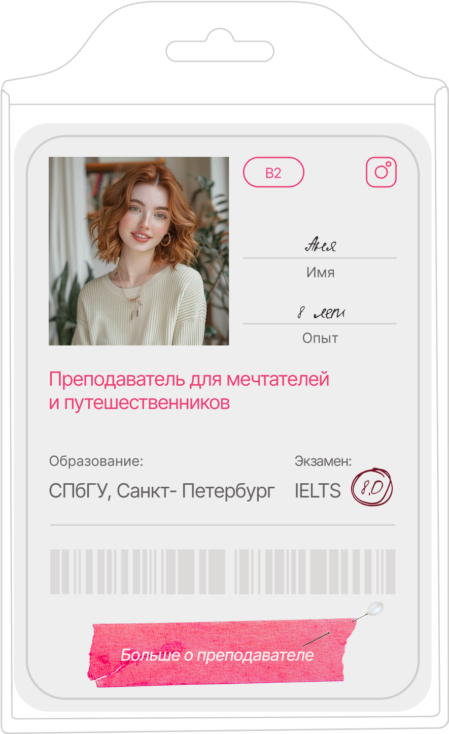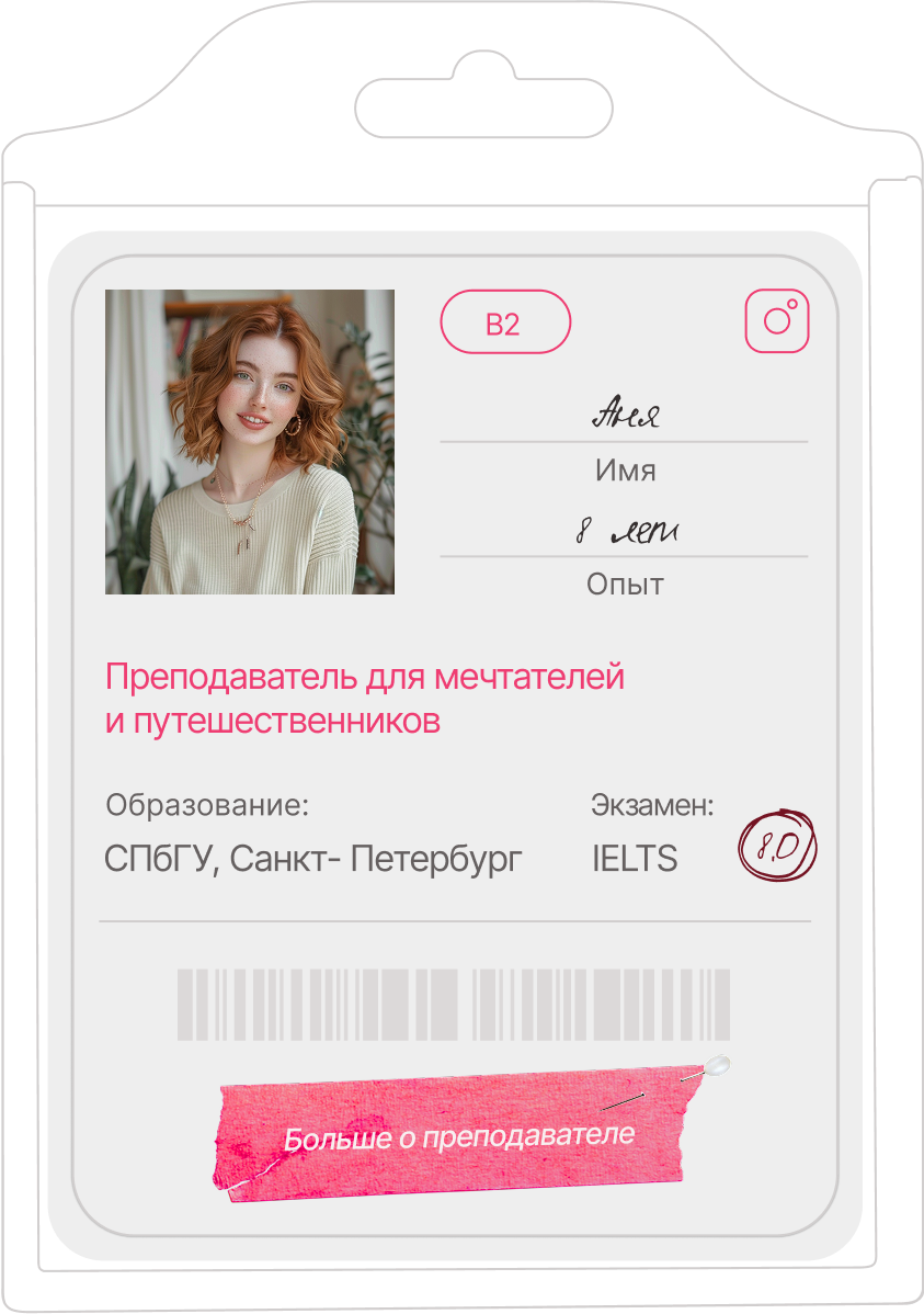 Если вы будете регулярно посещать занятия, выполнять задания на платформе и прислушиваться к советам преподавателя — результат обязательно будет! Мы полностью уверены в нашей обучающей программе: её разработала основательница школы, у которой за плечами 10 лет изучения английского и многолетний опыт преподавания студентам разного уровня. Мы точно знаем, какие форматы и упражнения не только понравятся вам, но и действительно помогут в обучении!